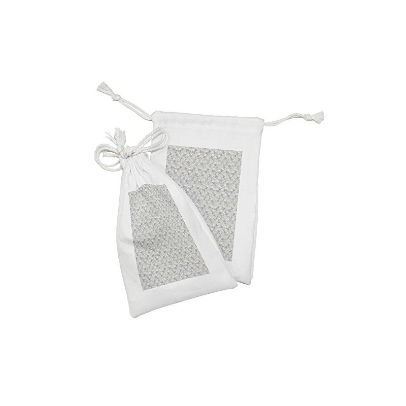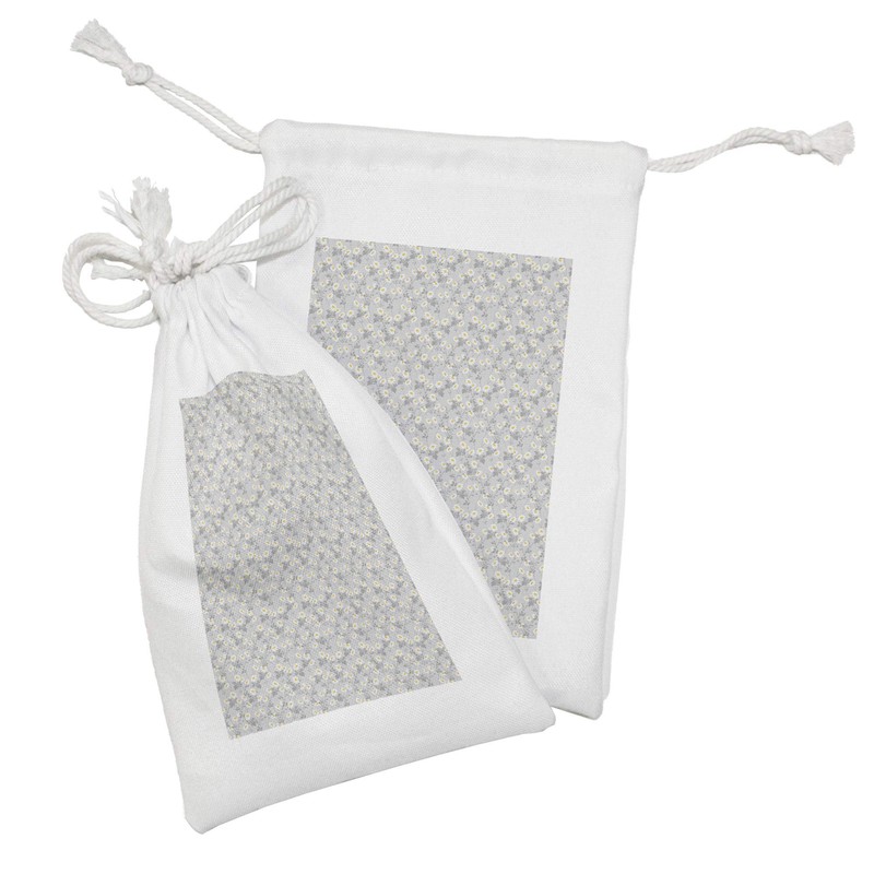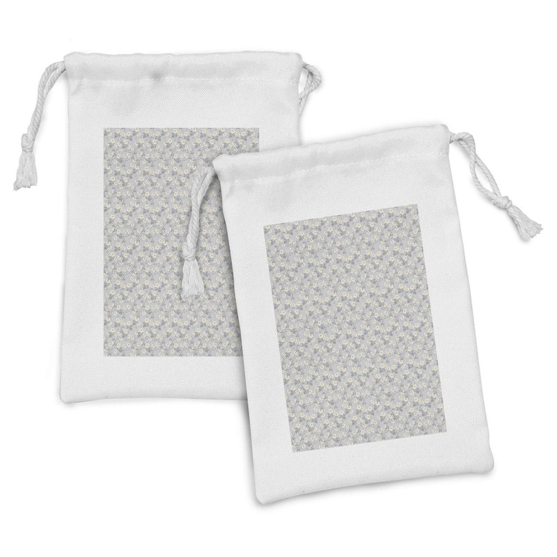 Ambesonne Floral Fabric Pouch Set of 2, Daisies View with Leaves in Greyscale Chamomiles Design, Small Drawstring Bag for Toiletries Masks and Favors, 9" x 6", Pale Grey Yellow