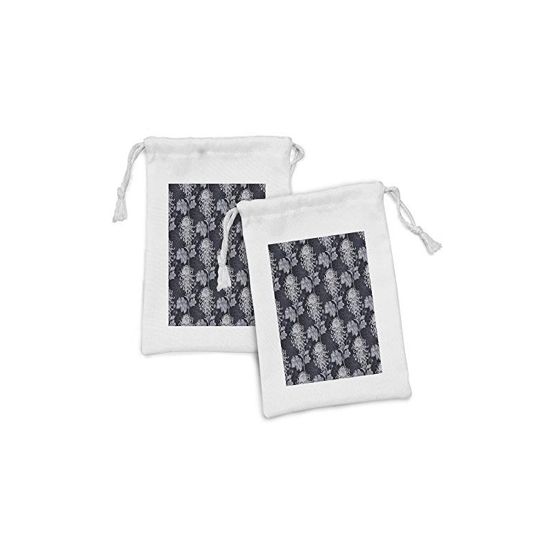 Ambesonne Floral Fabric Pouch Set of 2, Gothic Flower Bouquet Chrysanthemum Blooming Harvest Baroque Motif, Small Drawstring Bag for Toiletries Masks and Favors, 9" x 6", Indigo Pale Grey