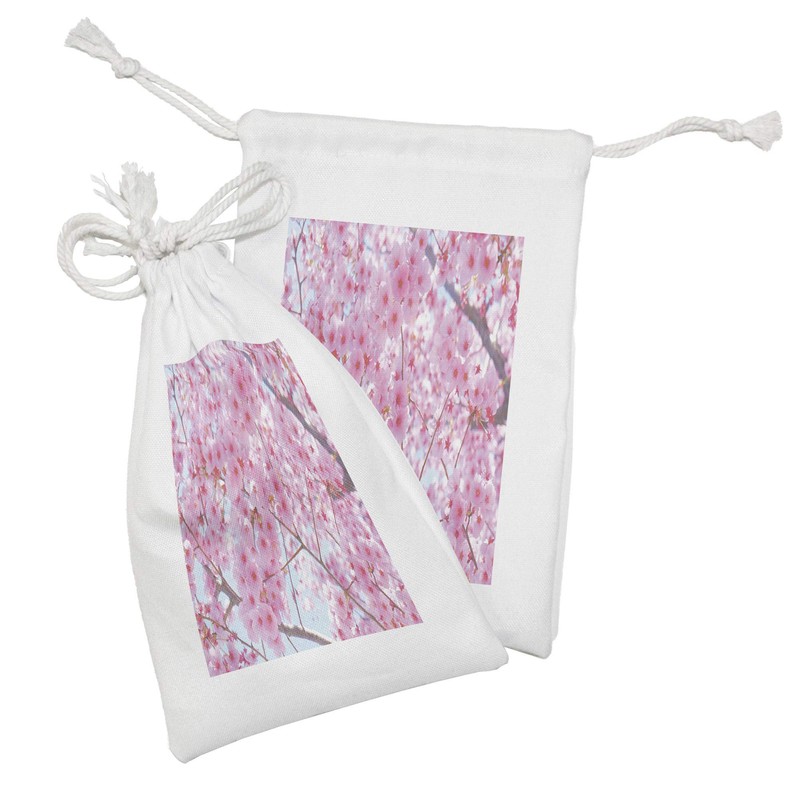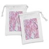 Ambesonne Floral Fabric Pouch Set of 2, Japanese Sakura Florets Essence Nature Beauty Blossoms Refreshing Summer Picture, Small Drawstring Bag for Toiletries Masks and Favors, 9" x 6", Pale Pink