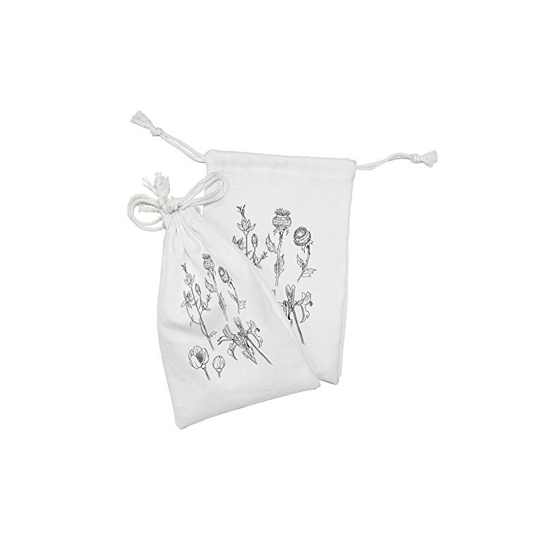 Ambesonne Floral Fabric Pouch Set of 2, Sketchy Silhouettes of Flowers Blooming Hand Drawn Inspired Bouquet Foliage, Small Drawstring Bag for Toiletries Masks and Favors, 9" x 6", Charcoal Grey White