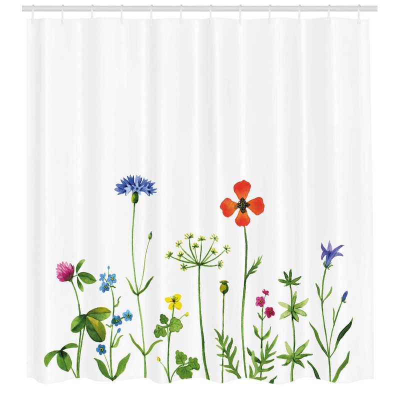 Ambesonne Floral Shower Curtain, Rural Meadow Flower Field with Blooms Spring Summer Botany Nature Country Image, Cloth Fabric Bathroom Decor Set with Hooks, 69" W x 75" L, Pale Green