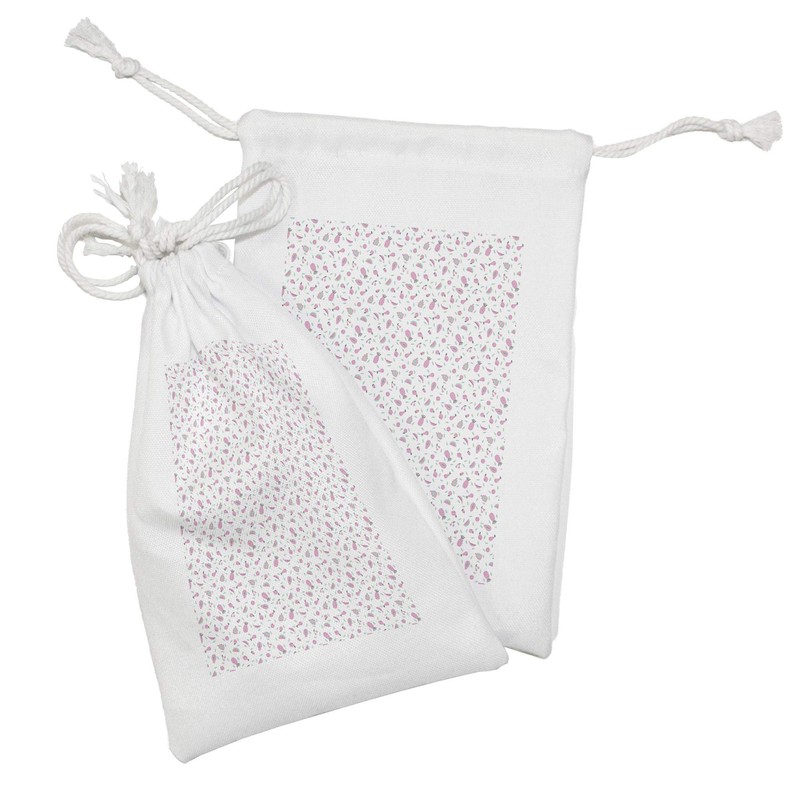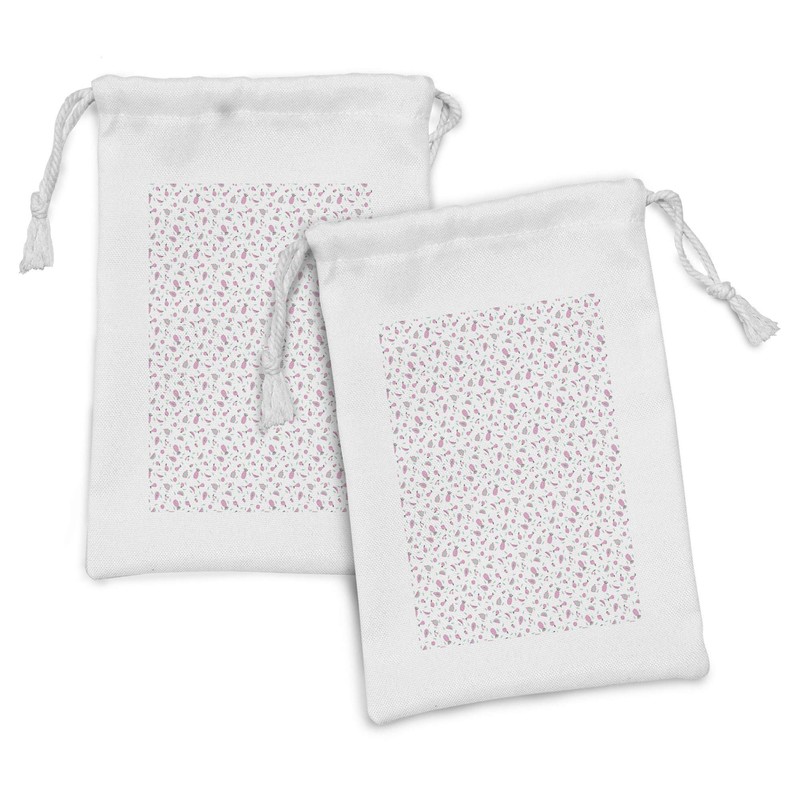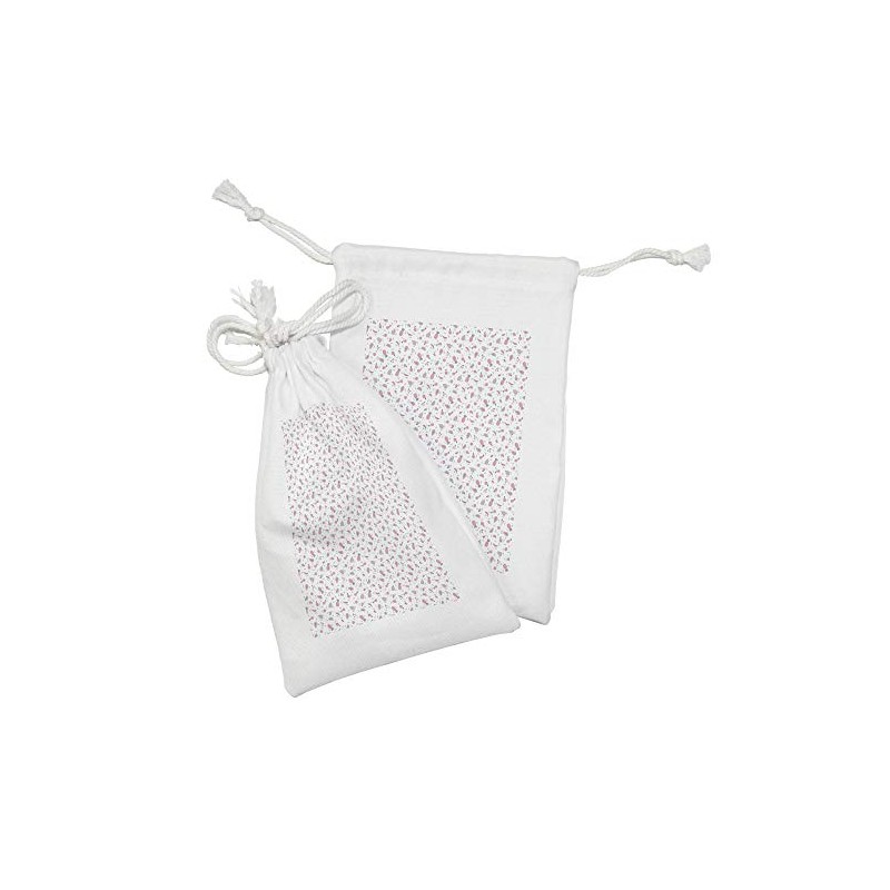 Ambesonne Fruits Fabric Pouch Set of 2, Motifs of Tropical Pineapples Cherries Pears Strawberries, Small Drawstring Bag for Toiletries Masks and Favors, 9" x 6", Pale Pink Mint Green