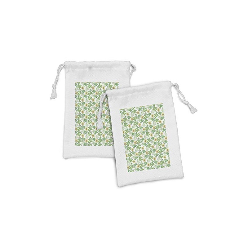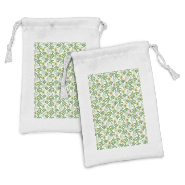 Ambesonne Gardening Fabric Pouch Set of 2, Buttercup Flowers Field Leaf Botany Flourish in the Yard Summer, Small Drawstring Bag for Toiletries Masks and Favors, 9" x 6", Green and Pastel Yellow