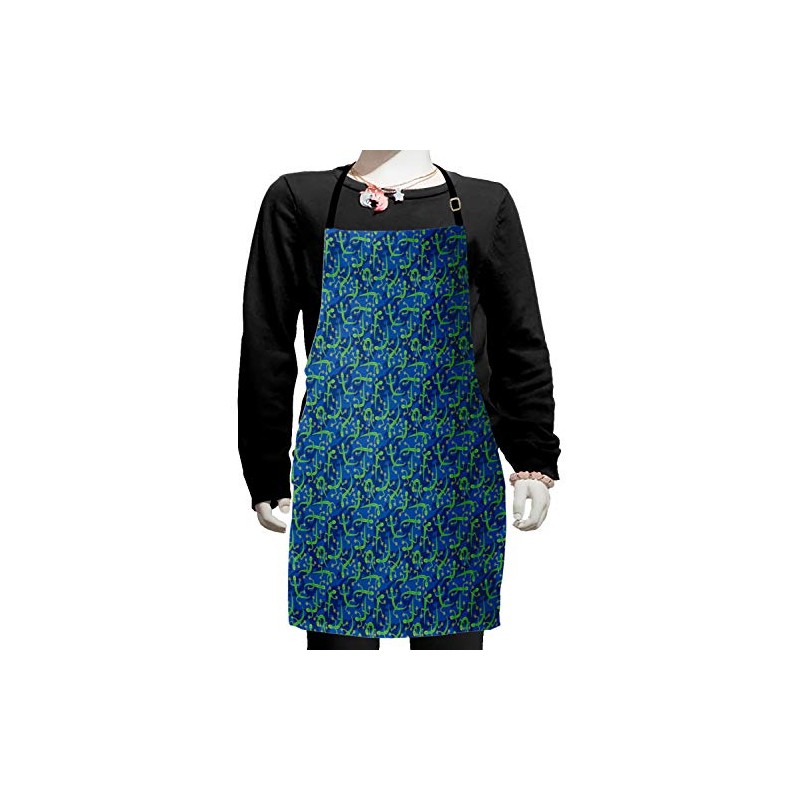 Ambesonne Gecko Apron, Doodle Style Lizard Pattern with Blue Shaded Background Reptile Cartoon, Small Apron Bib with Adjustable Ties for Baking Painting, Small Size, Navy Blue and Green