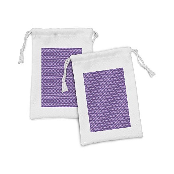 Ambesonne Geometric Fabric Pouch Set of 2, Rhombus Composition Triangles and Diamond Shapes in Purple Shades, Small Drawstring Bag for Toiletries Masks and Favors, 9" x 6", Lavender Lilac and White