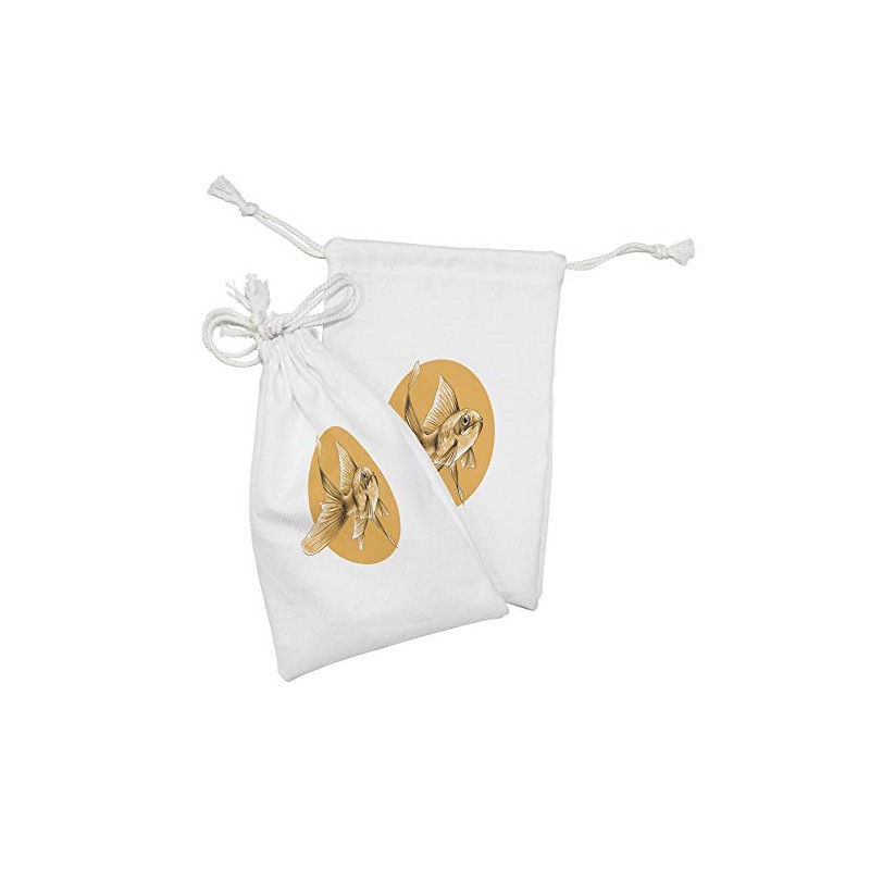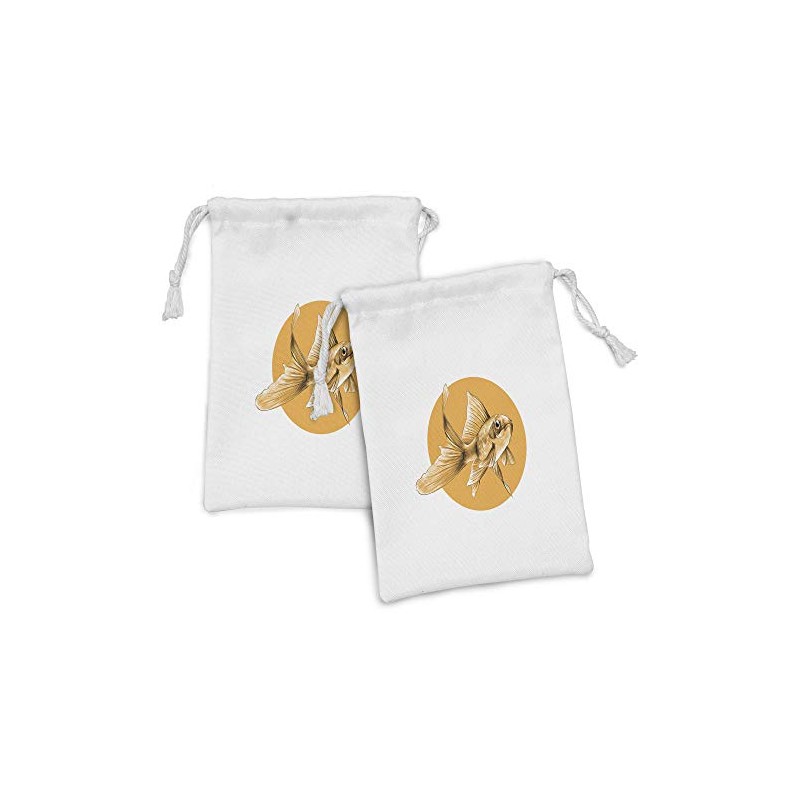 Ambesonne Goldfish Fabric Pouch Set of 2, Goldfish Sketchy Graphic on the Background of an Orange Circular Spot, Small Drawstring Bag for Toiletries Masks and Favors, 9" x 6", Orange and Dark Brown