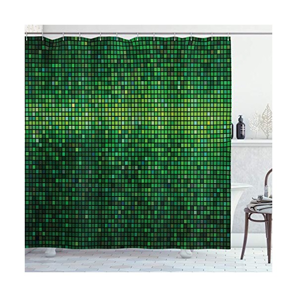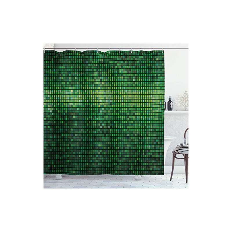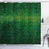 Ambesonne Green Shower Curtain, Abstract Vibrant Square Pixel Mosaic Design Geometric Technology Theme Digital Grid Print, Cloth Fabric Bathroom Decor Set with Hooks, 69" W x 70" L, Green