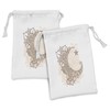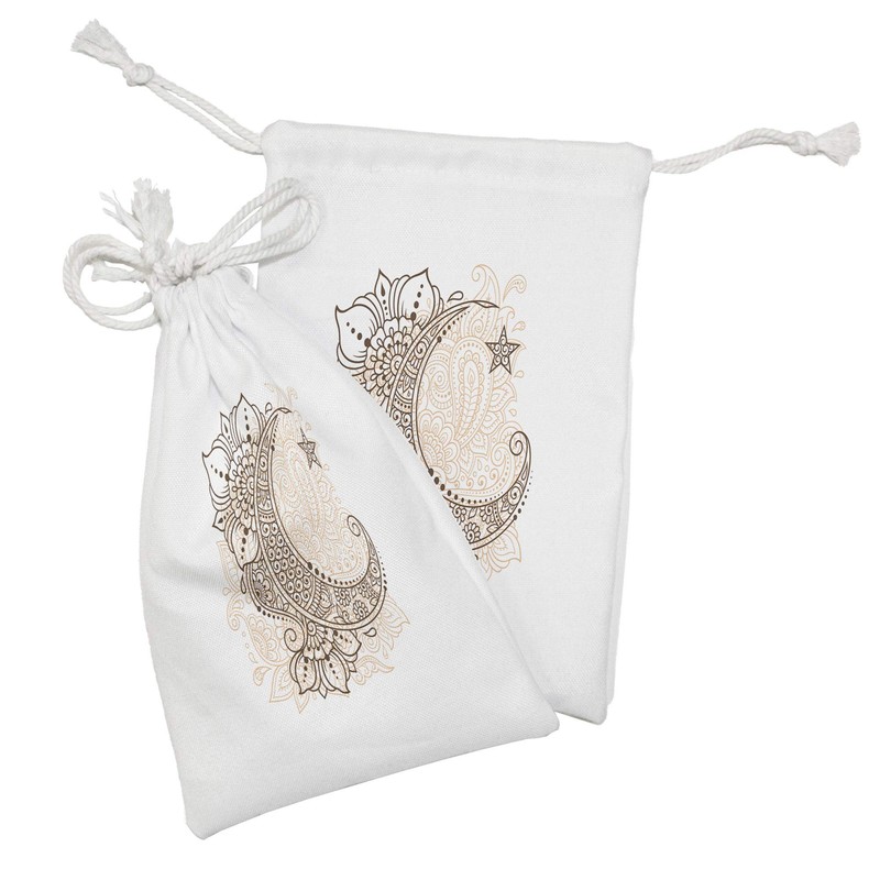 Ambesonne Half Moon Fabric Pouch Set of 2, Mystic Intricate Oriental Paisley Floral Crescent Star Arrangement, Small Drawstring Bag for Toiletries Masks and Favors, 9" x 6", Pale Peach and Chocolate