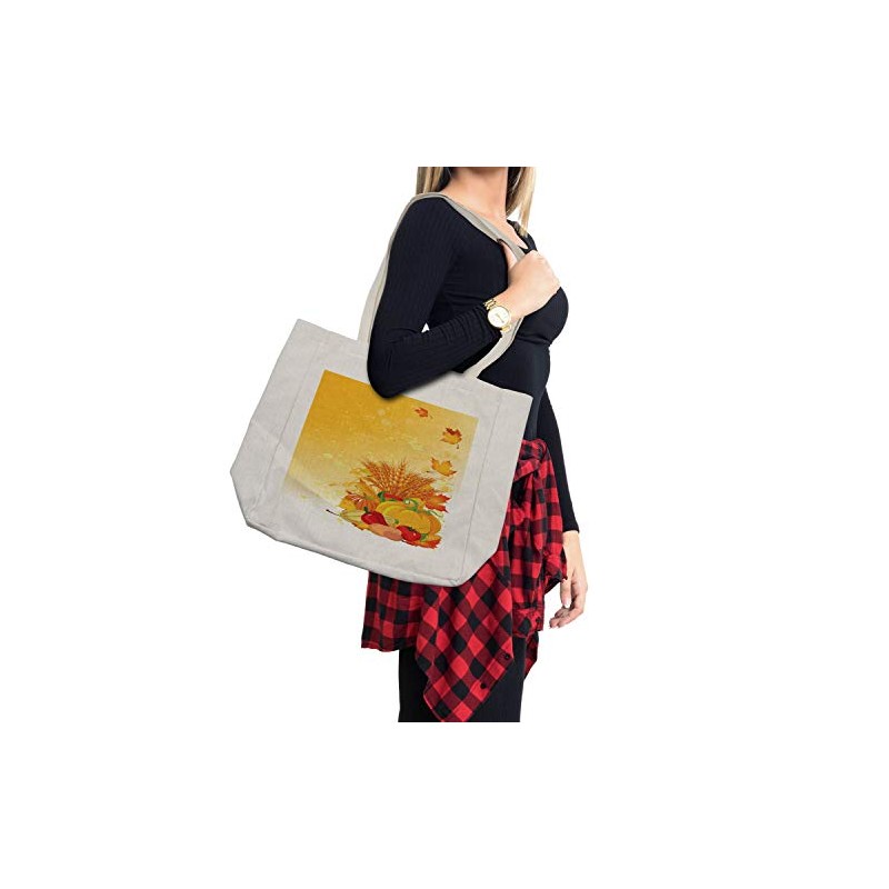 Ambesonne Harvest Shopping Bag, Vivid Group of Vegetables Plump Pumpkins Wheat Fall Leaves, Eco-Friendly Reusable Bag for Groceries Beach and More, 15.5" X 14.5", Cream