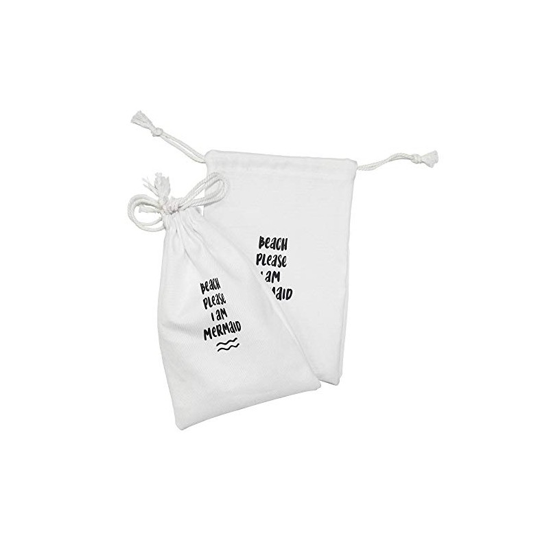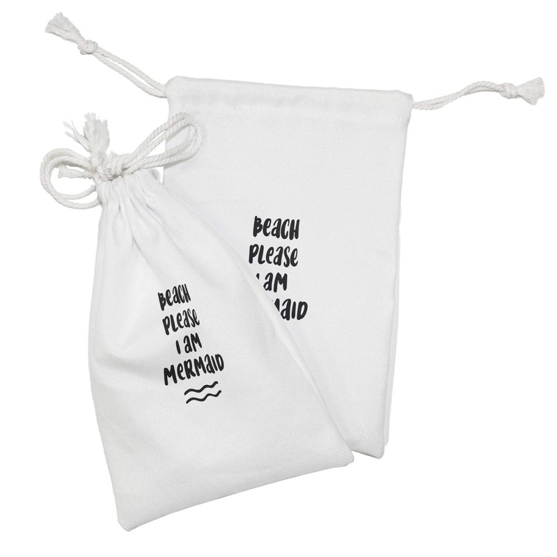 Ambesonne I'm Mermaid Fabric Pouch Set of 2, Pop Culture Pun Beach Please the Internet in Jokes Confidence Boosting Phrase, Small Drawstring Bag for Toiletries Masks and Favors, 9" x 6", Black White