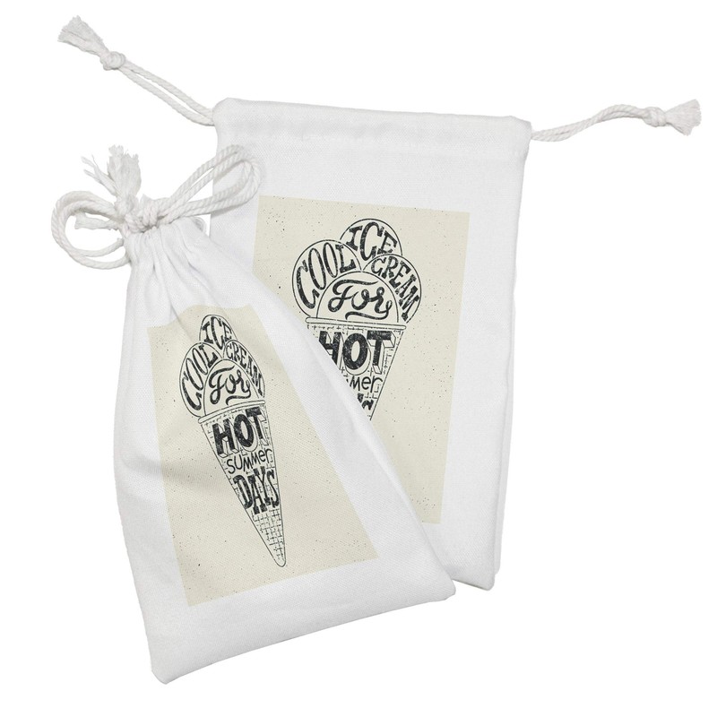 Ambesonne Ice Cream Fabric Pouch Set of 2, Grunge Style Cool Ice Cream for Hot Summer Days Words Lifestyle Print, Small Drawstring Bag for Toiletries Masks and Favors, 9" x 6", Coconut Charcoal Grey
