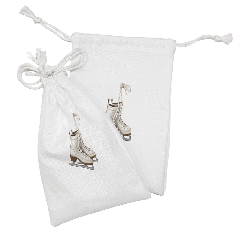 Ambesonne Ice Skates Fabric Pouch Set of 2, Skates Ice Rink Equipment Footwear Outdoor Activities, Small Drawstring Bag for Toiletries Masks and Favors, 9" x 6", Dimgray Chocolate