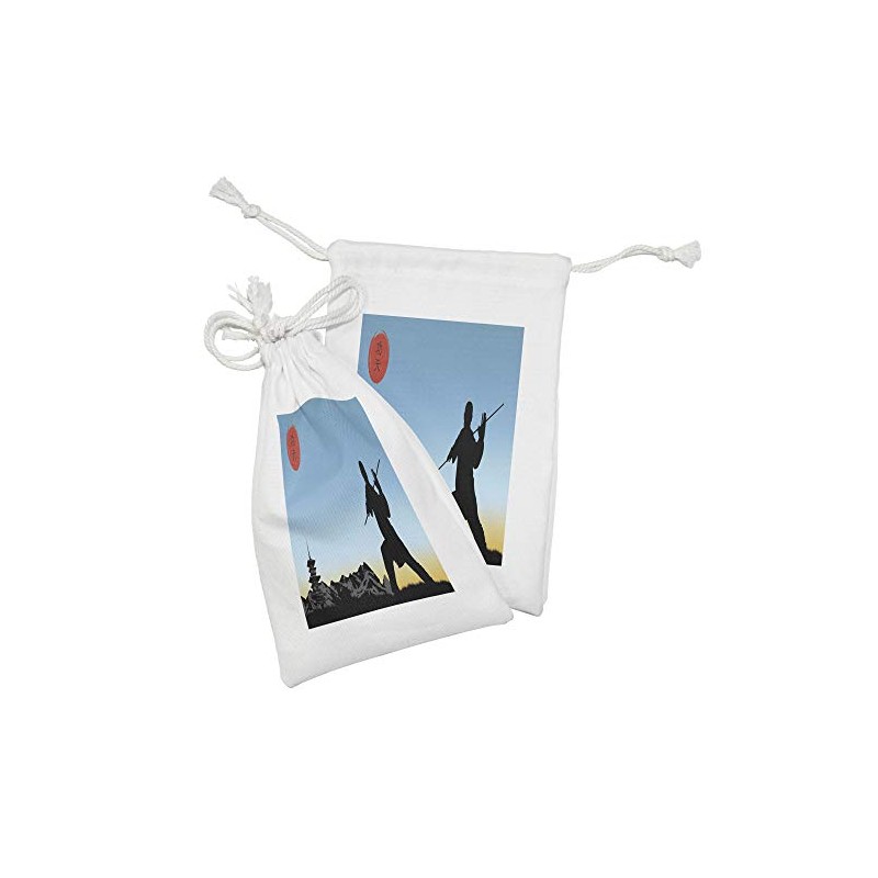 Ambesonne Kung Fu Fabric Pouch Set of 2, Man Silhouette Demonstrates Technique of Karate, Small Drawstring Bag for Toiletries Masks and Favors, 9" x 6", Sky Blue Charcoal Grey