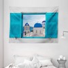 Ambesonne Landscape Tapestry, Window with View of Classical Building with Blue Domes Oia Santorini Greece, Wide Wall Hanging for Bedroom Living Room Dorm, 80" X 60", White Blue