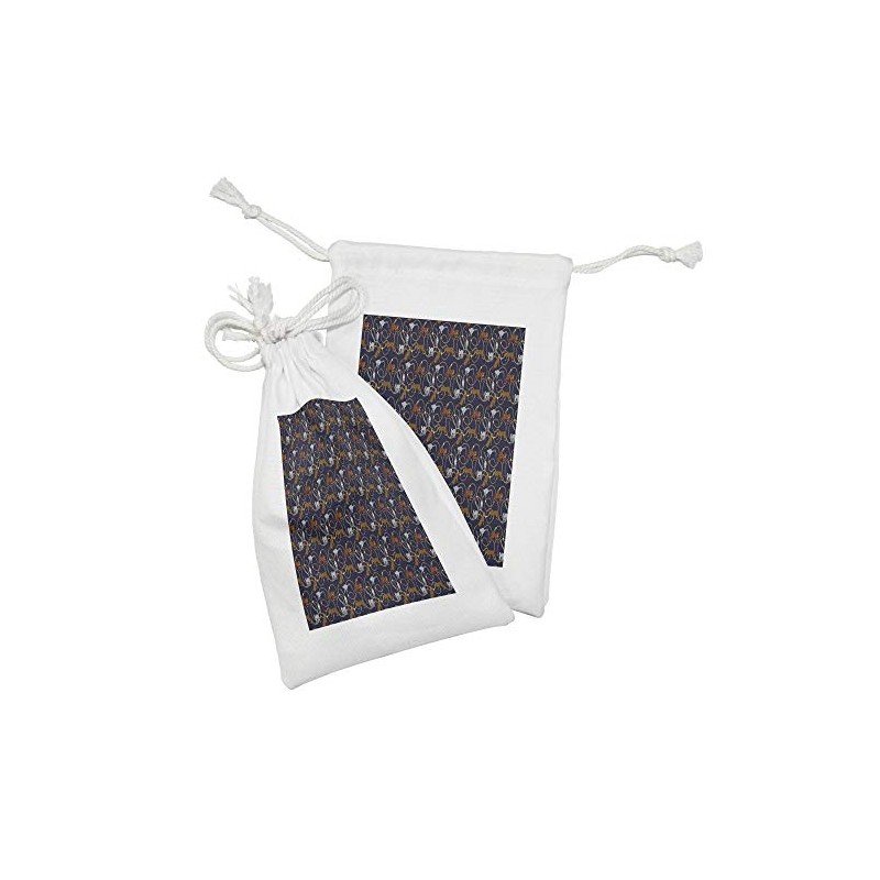 Ambesonne Lemur Fabric Pouch Set of 2, Exotic Tiger Leopard Madagascar Monkey Chains Abstract Repeating Pattern, Small Drawstring Bag for Toiletries Masks and Favors, 9" x 6", Apricot Dark Navy Blue