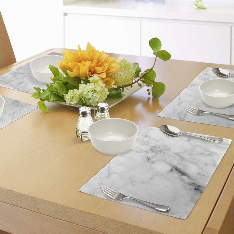 Ambesonne Marble Print Place Mats Set of 4, Stone Surface Pattern Cracked Lines and Stripes Display, Washable Fabric Placemats for Dining Table, Standard Size, Grey Dust White