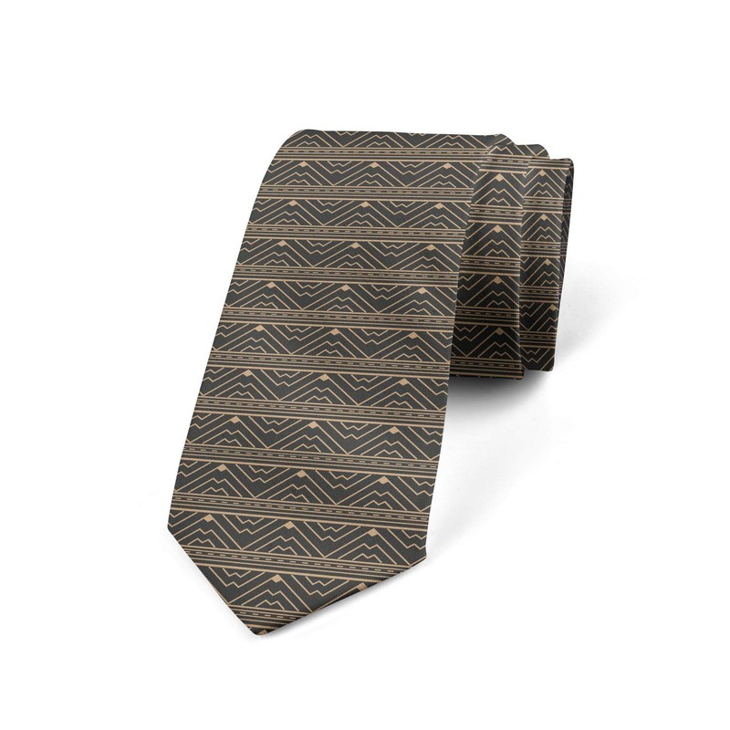 Ambesonne Men's Tie, Aztec Pattern Triangle Wave, 3.7", Tan Grey