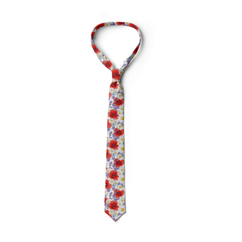 Ambesonne Men's Tie, Poppy and Daisy Flower, 3.7", Lavender Scarlet