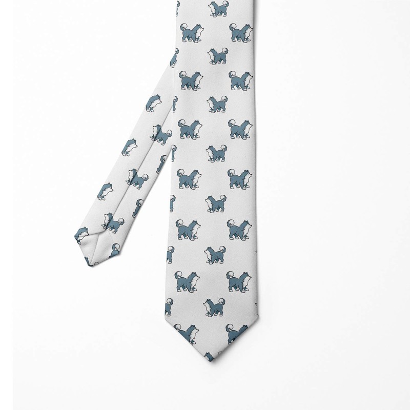 Ambesonne Men's Tie, Siberian Husky Puppy, 3.7", Blue Grey