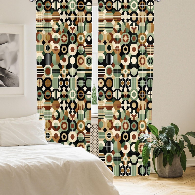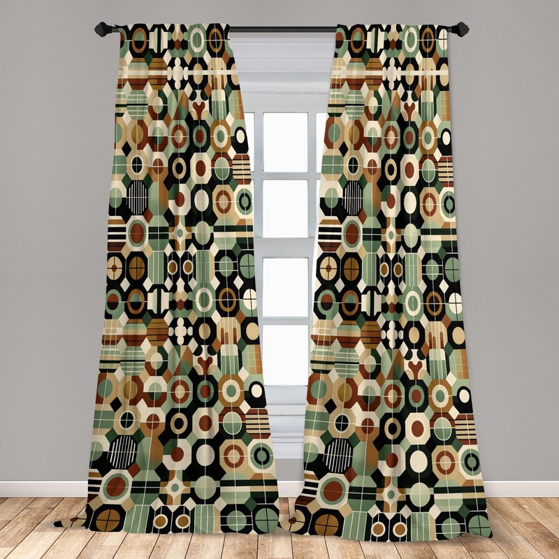 Ambesonne Mid Century Geometric Window Curtains, Hexagonal Shapes Honeycomb Gird Shapes of Retro Vibes, Lightweight Decor 2-Panel Set with Rod Pocket, Pair of - 28" x 63", Laurel Green Amber Black