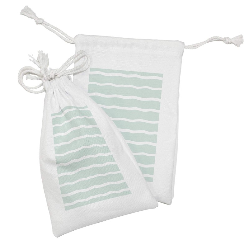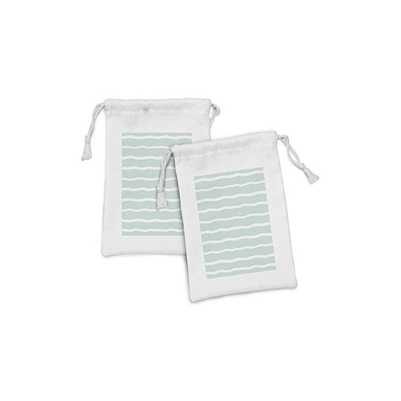 Ambesonne Mint Fabric Pouch Set of 2, Horizontal Wavy Lines White Striped Abstract Soft Toned Nautical Art Display, Small Drawstring Bag for Toiletries Masks and Favors, 9" x 6", Almond Green White
