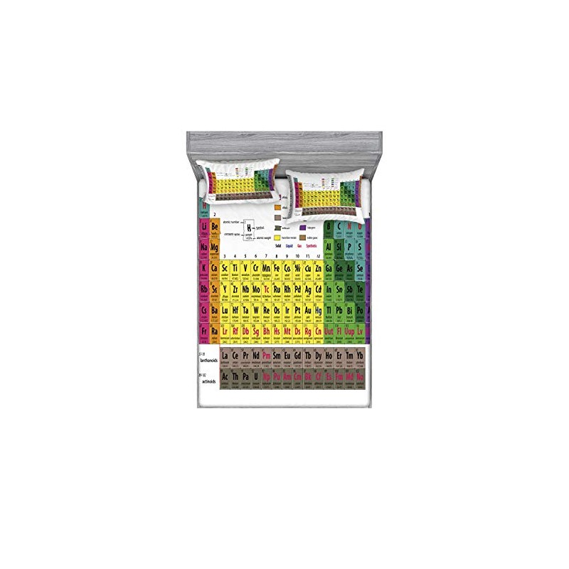 Ambesonne Modern Fitted Sheet & Pillow Sham Set, Periodic Table of Elements PHD Chemistry Student Family for Science Lover Education, Decorative Printed 3 Piece Bedding Decor Set, Full, Yellow