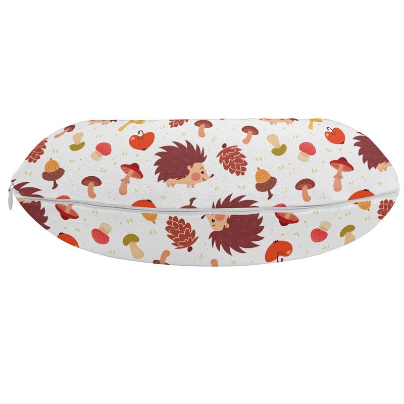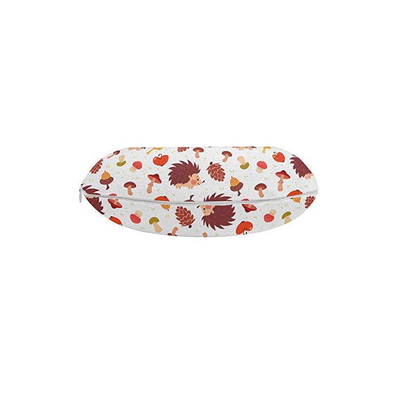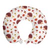 Ambesonne Mushroom Travel Pillow Neck Rest, Autumn Inspired Pattern with Natural Elements Hedgehogs Acorns and Apples, Memory Foam Traveling Accessory for Airplane and Car, 12", Burgundy White