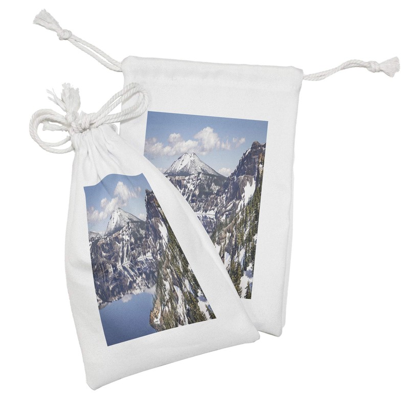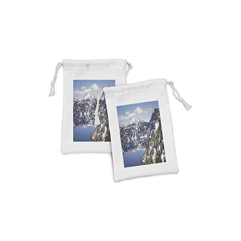 Ambesonne Nature Scene Fabric Pouch Set of 2, Wild Natural Scenic View of Reflections on Calm Clear Crater Lake, Small Drawstring Bag for Toiletries Masks and Favors, 9" x 6", Dark Lavender Dark Grey