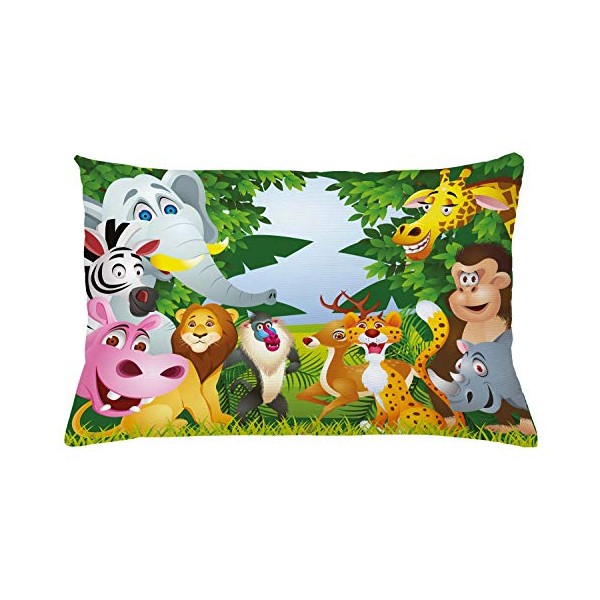 Ambesonne Nursery Throw Pillow Cushion Cover, Group of Safari Jungle Animals with Funny Expressions Savannah Mascots, Decorative Rectangle Accent Pillow Case, 26" X 16", Forest Green