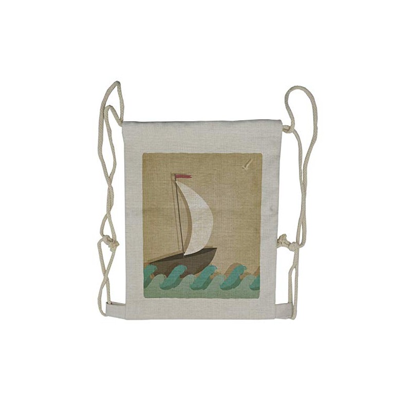 Ambesonne Ocean Drawstring Backpack, Seagulls Boating Marine, Sackpack Bag