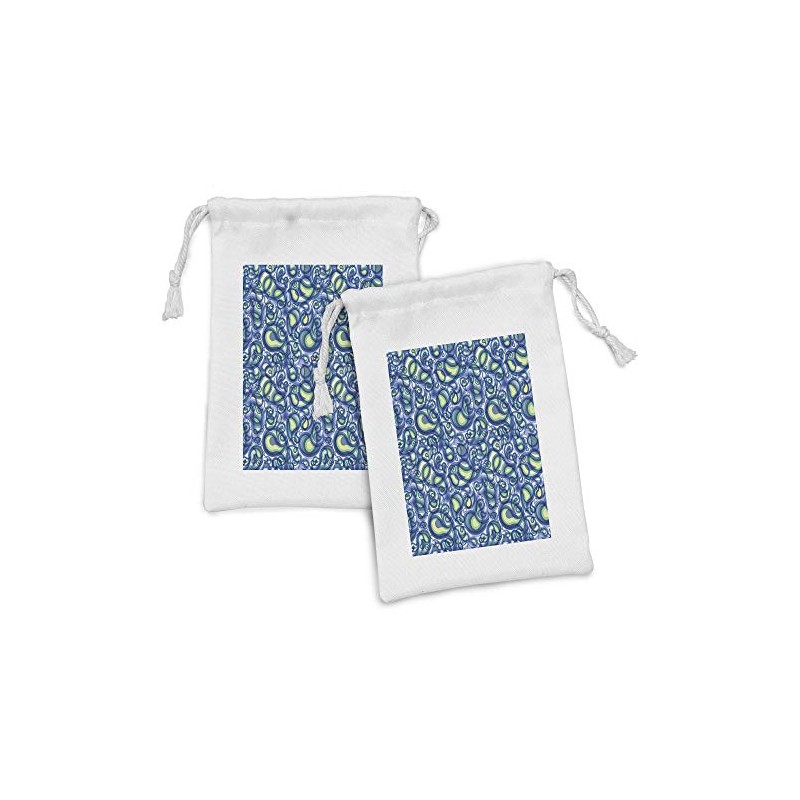 Ambesonne Paisley Fabric Pouch Set of 2, Ocean Waves Like Design with Big and Small Raindrops Inspired Artwork, Small Drawstring Bag for Toiletries Masks and Favors, 9" x 6", Blue and Green