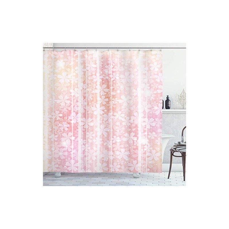 Ambesonne Pale Pink Shower Curtain, Floral Pattern Essence Growth Nature Beauty Blossoms Dreamy Spring Print, Cloth Fabric Bathroom Decor Set with Hooks, 75" Long, Peach Salmon