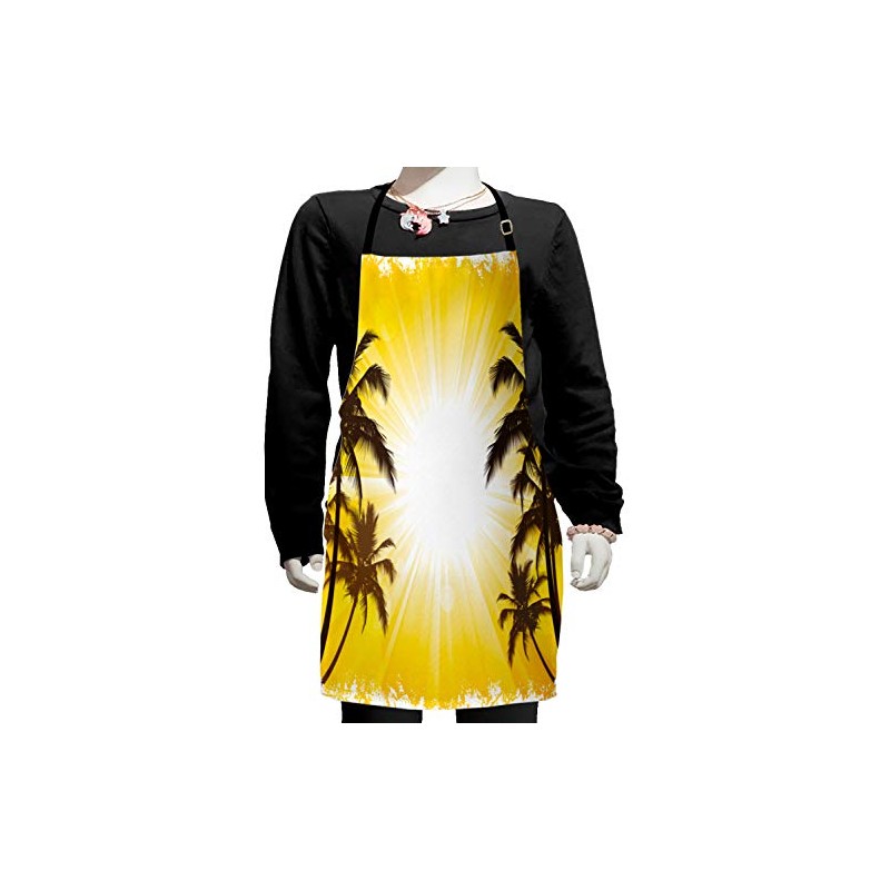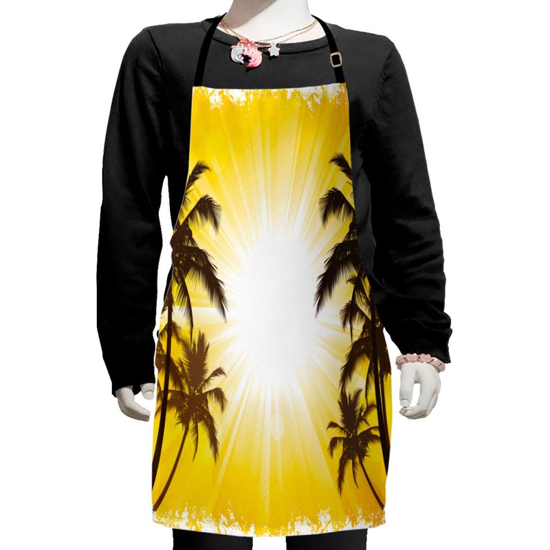 Ambesonne Palm Tree Apron, Holiday Theme a Sunny Tropical Place with Palm Trees Illustration Print, Small Apron Bib with Adjustable Ties for Baking Painting, Small Size, Yellow and White