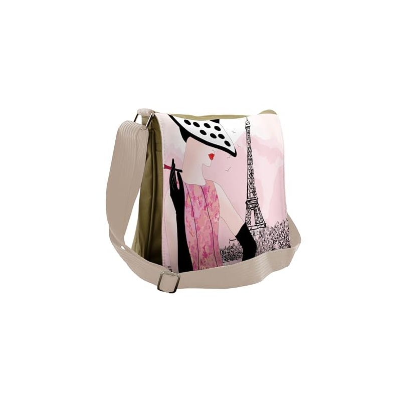 Ambesonne Paris Themed Messenger Bag, Lady and Eiffel Tower, Unisex Cross-body