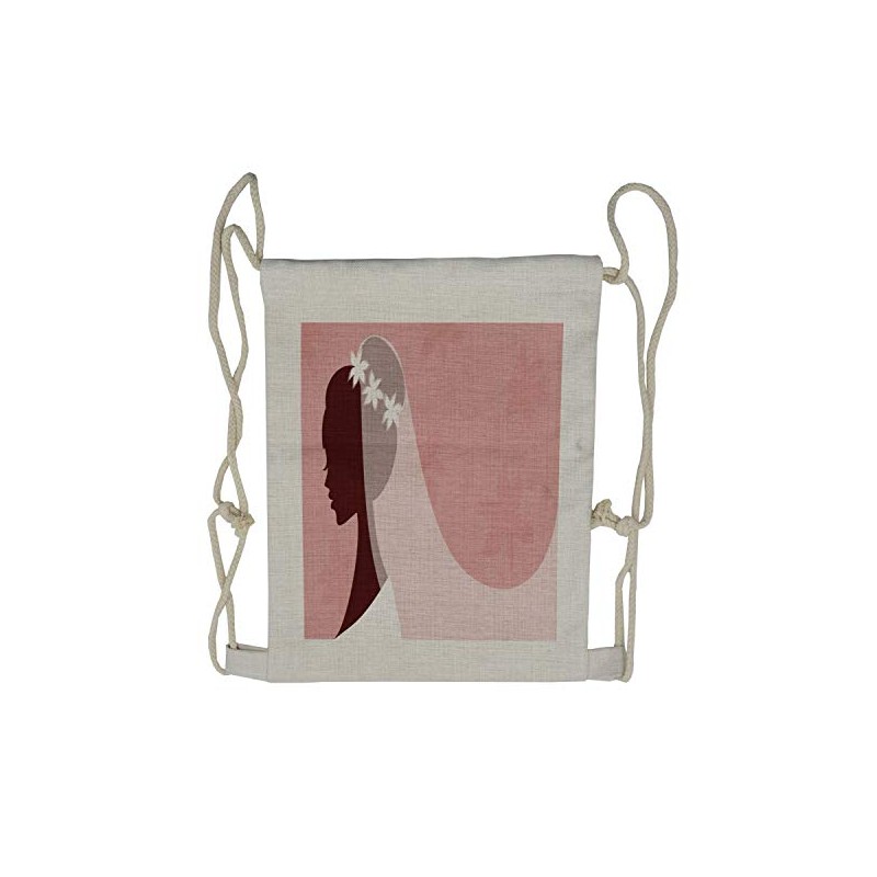 Ambesonne Pink White Drawstring Backpack, Bride Wedding Dress, Sackpack Bag