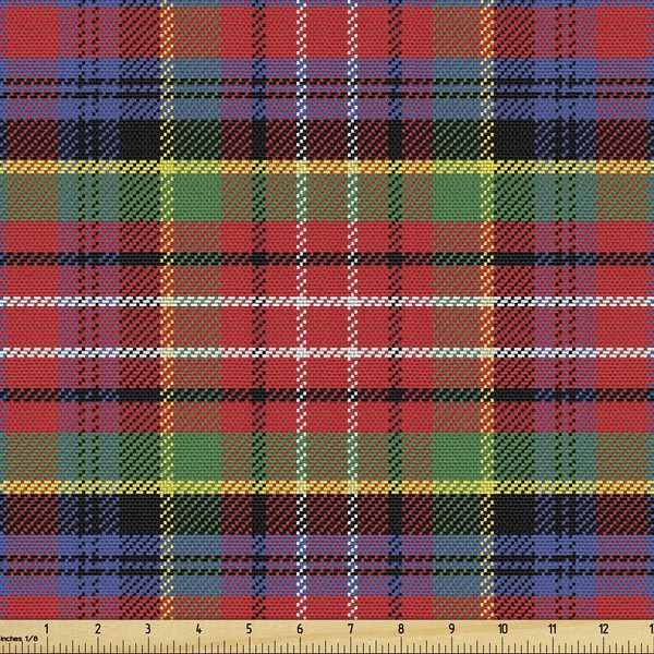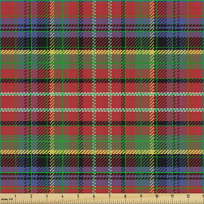 Ambesonne Plaid Fabric by The Yard, Caledonia Scottish Traditional Pattern Tartan Motif Abstract Squares Ornate Quilt, Decorative Fabric for Upholstery and Home Accents, 2 Yards, Red Green