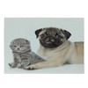 Ambesonne Pug Cutting Board, Cute Young Pets Kitten and Puppy Pug Scottish Fold Animal Fun Photography Print, Decorative Tempered Glass Cutting and Serving Board, Small Size, Pale Brown Beige