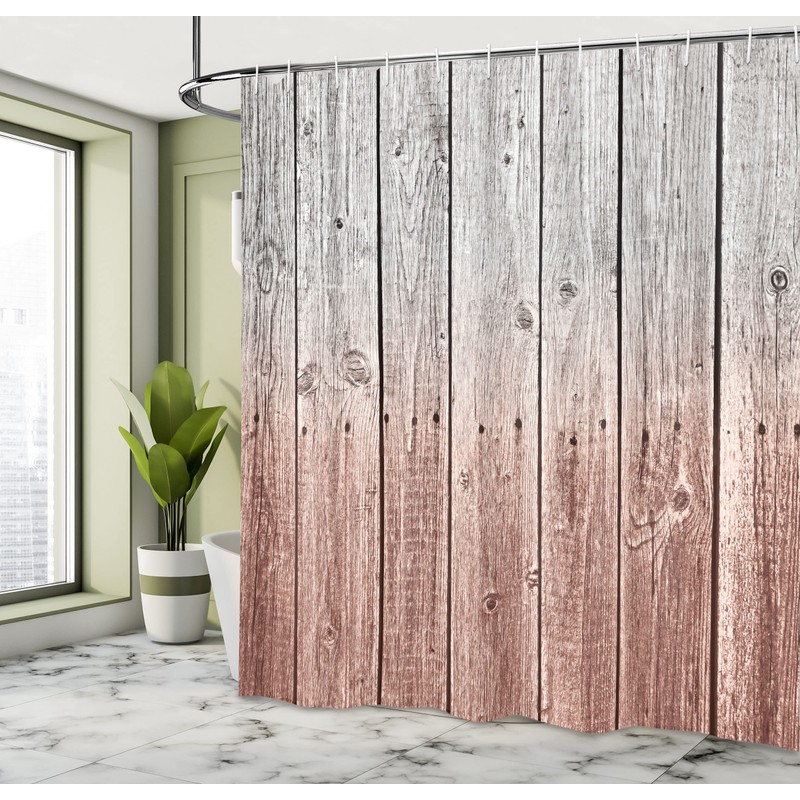 Ambesonne Rustic Shower Curtain, Wood Panels Background with Digital Tones Effect Country House Image, Cloth Fabric Bathroom Decor Set with Hooks, 69" W x 75" L, Redwood Grey