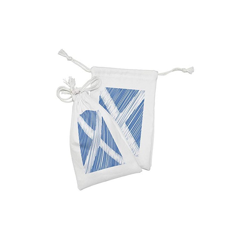 Ambesonne Scotland Fabric Pouch Set of 2, National Scottish Flag the Saltire European Diagonal Streaks Drawn by Hand, Small Drawstring Bag for Toiletries Masks and Favors, 9" x 6", Cobalt Blue White