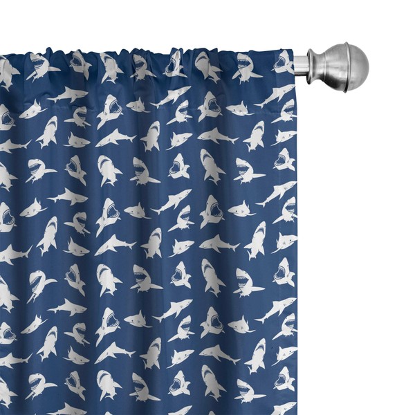 Ambesonne Shark Window Curtains, Fish Pattern Various Gestures Have a Bite Danger Humor Nautical Design, Lightweight Decor 2-Panel Set with Rod Pocket, Pair of - 28" x 95", Violet Blue