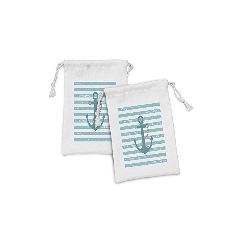 Ambesonne Striped Fabric Pouch Set of 2, Ship Anchor Chain Marine Life Inspired Lines Background Ocean Sailing, Small Drawstring Bag for Toiletries Masks and Favors, 9" x 6", Turquoise White and Teal