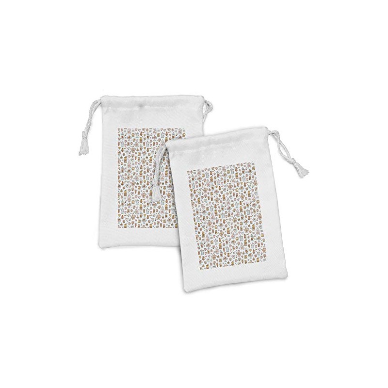 Ambesonne Tea Party Fabric Pouch Set of 2, Scattered Motifs of Coffee French Press Mocha Pot Cupcake Pastry Pretzels, Small Drawstring Bag for Toiletries Masks and Favors, 9" x 6", Pale Caramel Peach