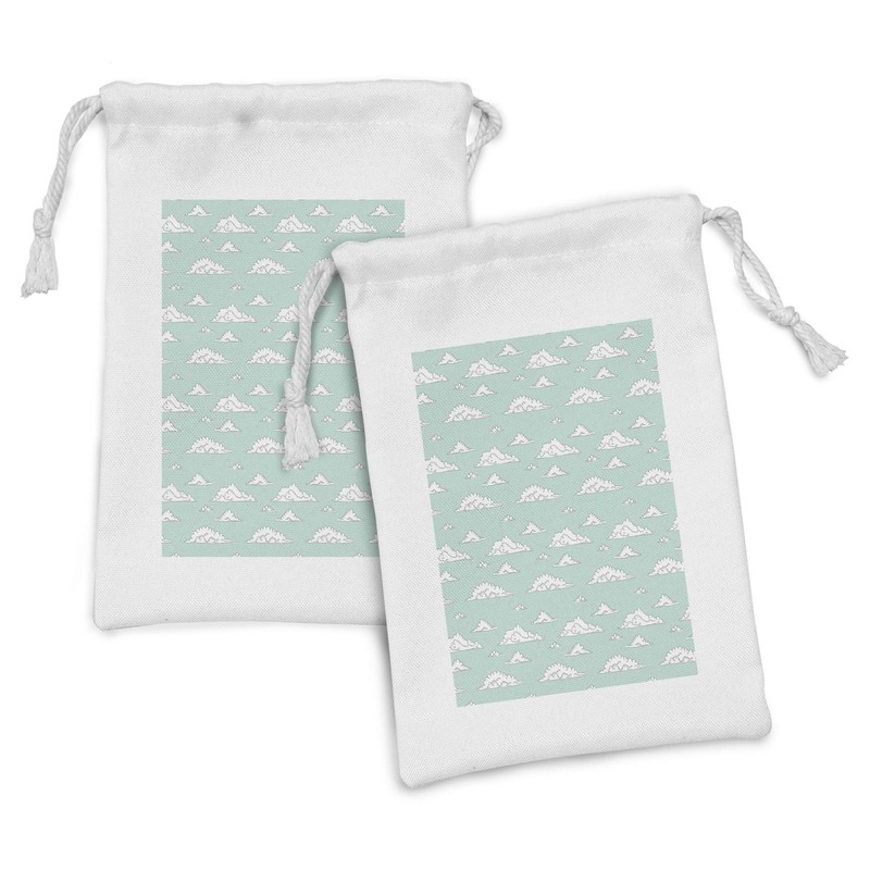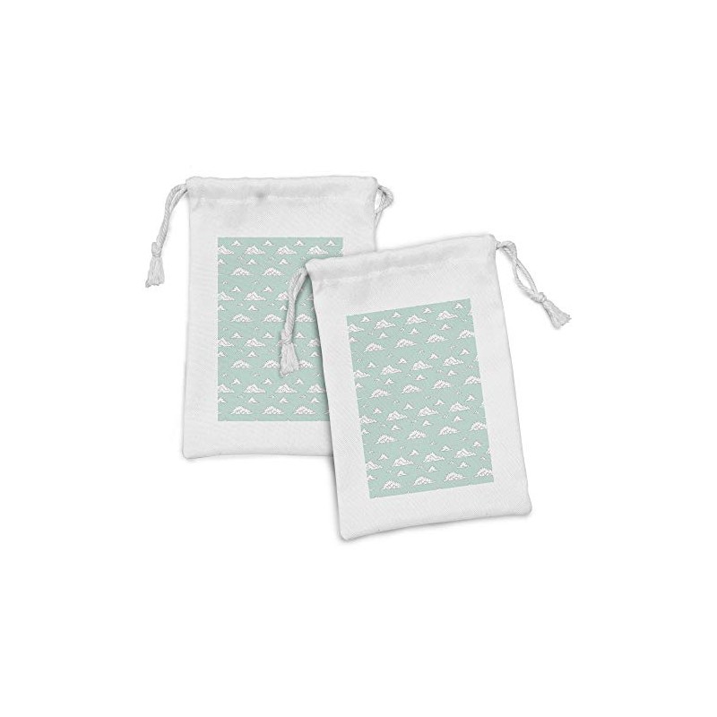 Ambesonne Teal and White Fabric Pouch Set of 2, Cartoon Style White Fluffy Clouds in the Clear Summer Sky Doodle Pattern, Small Drawstring Bag for Toiletries Masks and Favors, 9" x 6", Seafoam White