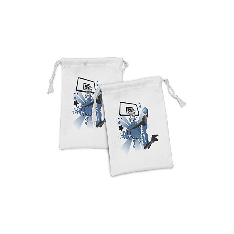 Ambesonne Teen Room Fabric Pouch Set of 2, Silhouette of Basketball Player Jumping Success Stars Illustration, Small Drawstring Bag for Toiletries Masks and Favors, 9" x 6", Black and Violet Blue