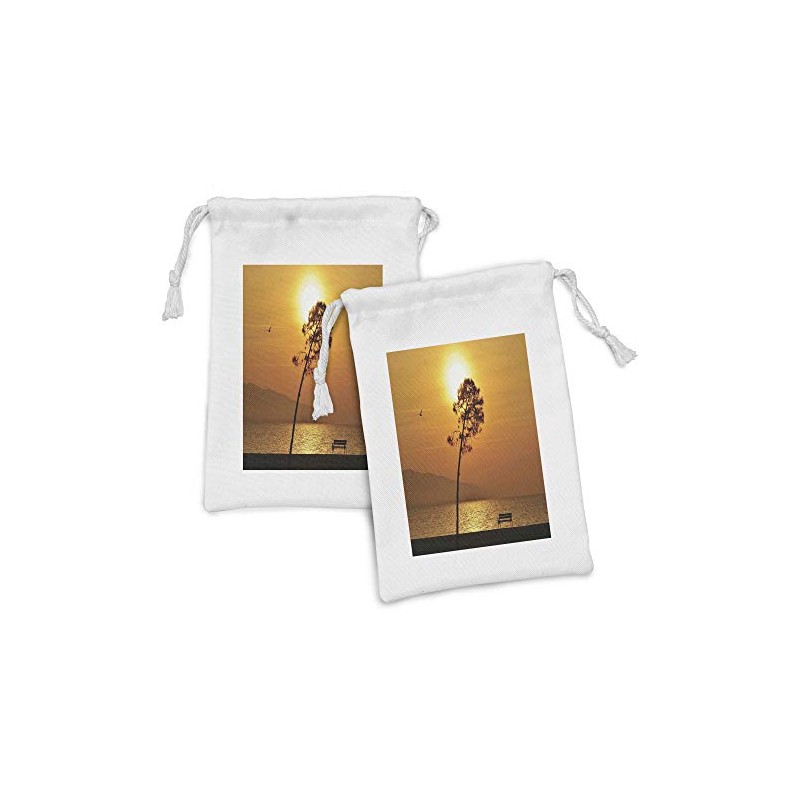Ambesonne Tree Fabric Pouch Set of 2, Lonely Sunset Tree by the Sea Sun Disappears and Day Fades down Twilight Concept Print, Small Drawstring Bag for Toiletries Masks and Favors, 9" x 6", Orange