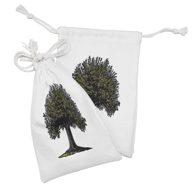 Ambesonne Tree of Life Fabric Pouch Set of 2, Digital Design of Mature Fruit Tree in Retro Engraving Style King of Forest, Small Drawstring Bag for Toiletries Masks and Favors, 9" x 6", Brown Green