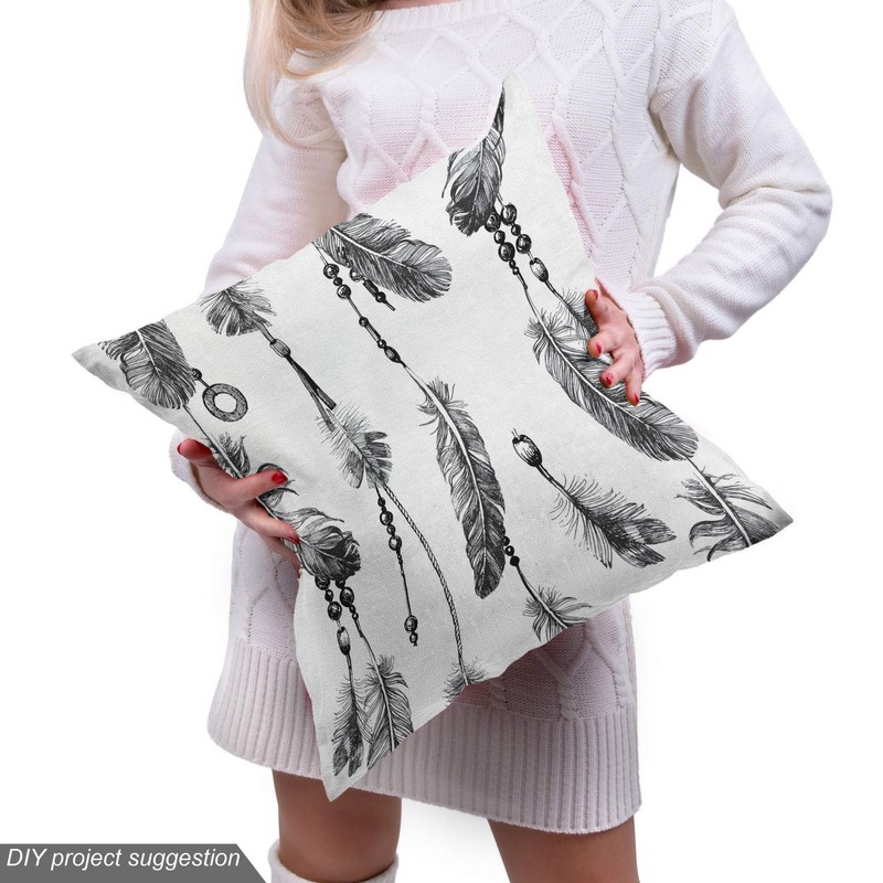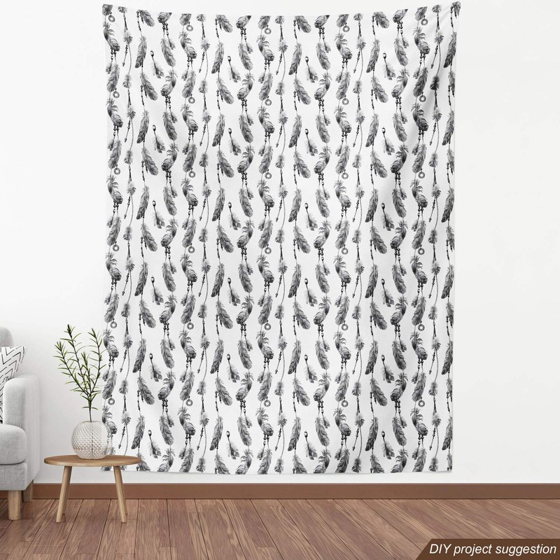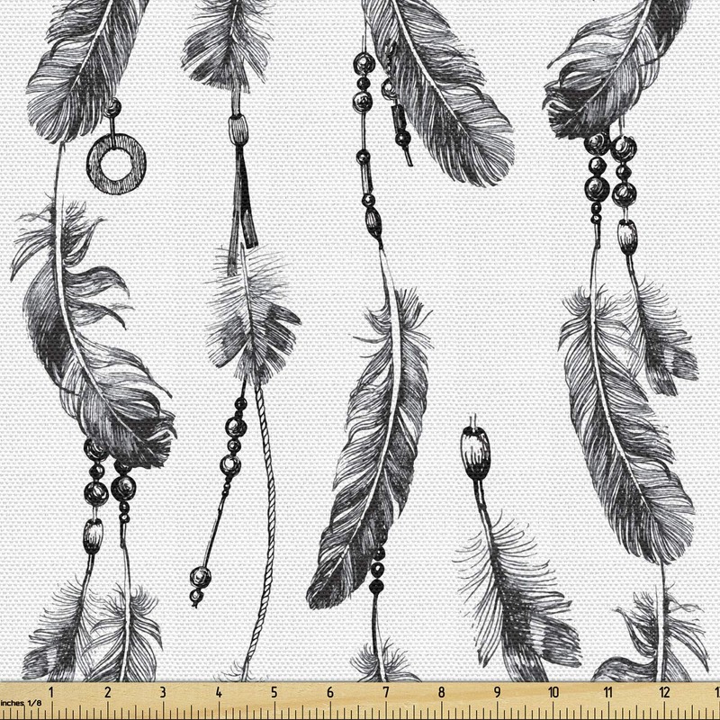 Ambesonne Tribal Fabric by The Yard, Bohemian Feathers and Beads on Thread Graphic Pattern Art, Decorative Fabric for Upholstery and Home Accents, 10 Yards, Grey Charcoal