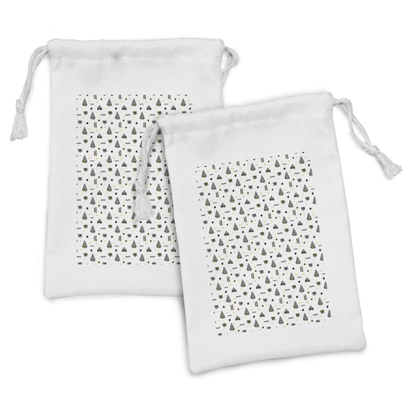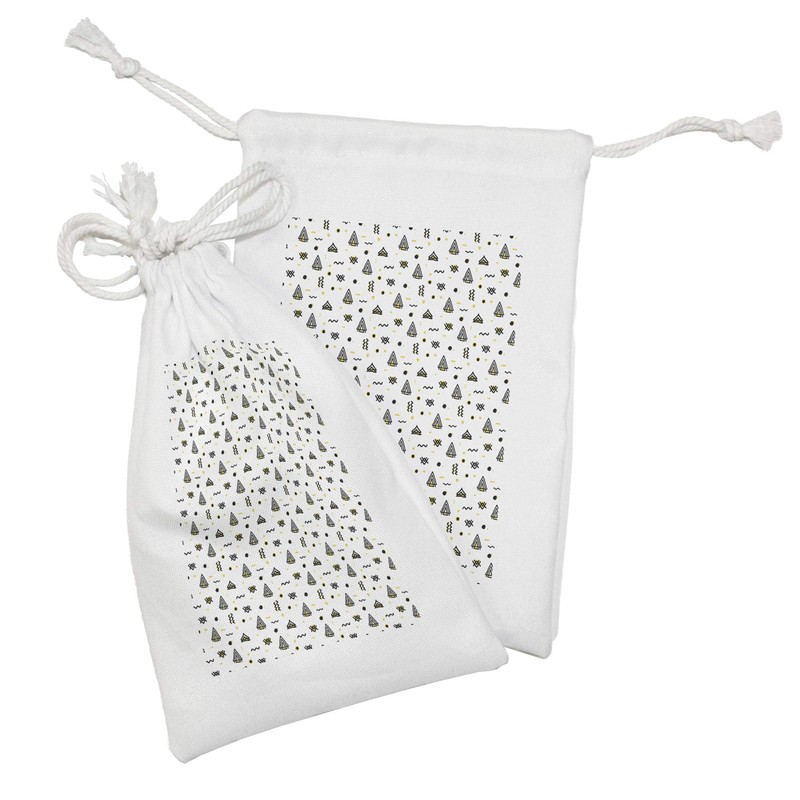 Ambesonne Tribal Fabric Pouch Set of 2, Abstract Angled Curved Stripes with Dots Triangles Doodle Style Composition, Small Drawstring Bag for Toiletries Masks and Favors, 9" x 6", Yellow Black White