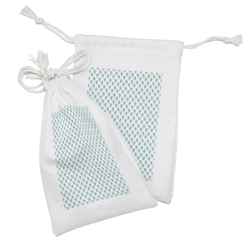Ambesonne Turquoise Fabric Pouch Set of 2, New Years Christmas Theme Winter Snow Gloves with Furry Borders Image, Small Drawstring Bag for Toiletries Masks and Favors, 9" x 6", White and Pale Blue