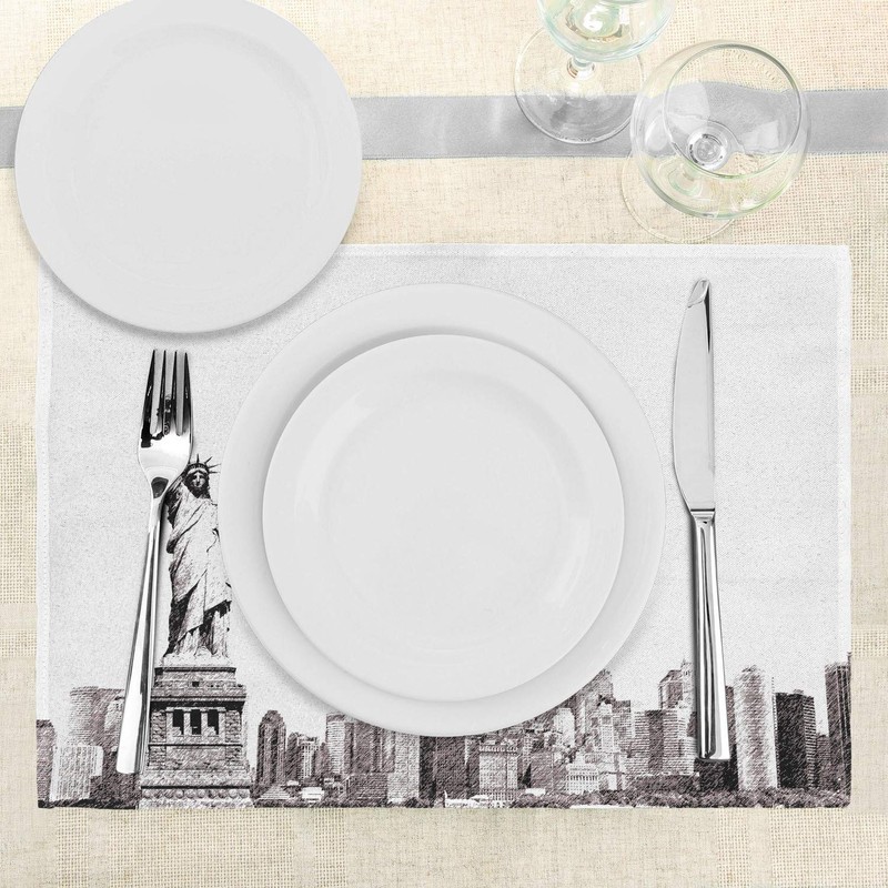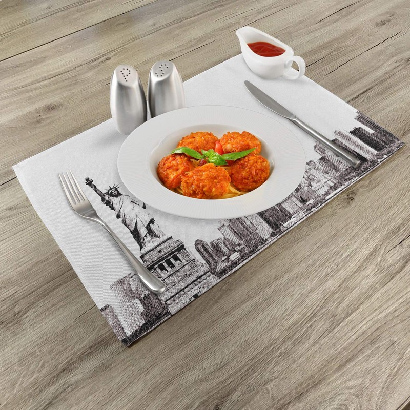 Ambesonne Urban Place Mats Set of 4, Cityscape of New York City Famous of Liberty and Skyscrapers Drawing Print, Washable Fabric Placemats for Dining Room Kitchen Table Decor, White and Grey